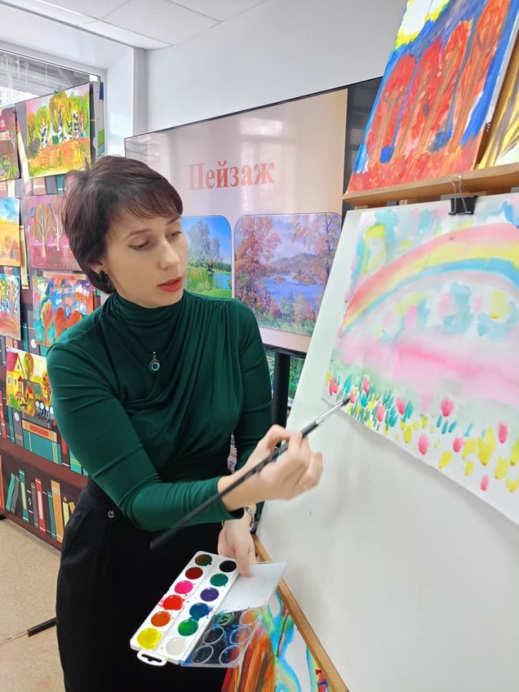 23 января 2026 года в стенах Детской модельной библиотеки- филиала №9 — Центре детского чтения МБУ «Централизованная библиотечная система» городского округа город Стерлитамак РБ преподаватель высшей категории МАУ ДО «ДХШ 1» г. Стерлитамака Николаева Анастасия Петровна провела мастер-класс на тему : «Пейзаж» с обучающимися 4б класса МАОУ СОШ 35 г. Стерлитамака. Ребята не только слушали и смотрели, как выполняется живописная работа, но и сами попробовали себя в роли художника- пейзажиста!