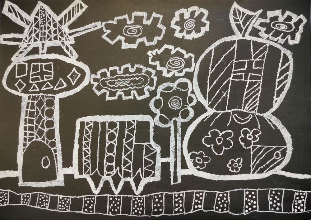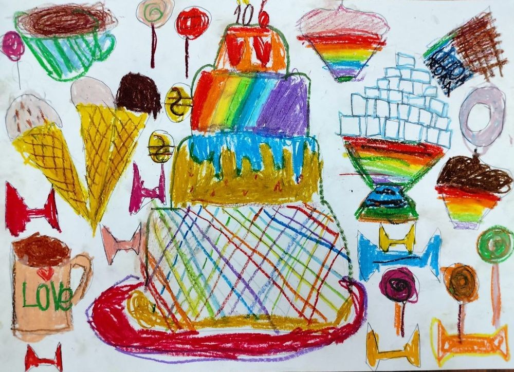 Тематика творческих работ в количестве не менее 10 работ формата А3 или А4, в соответствии уровня развития ребенка его возрасту: композиция на тему «Город будущего», сюжетные композиции по другим темам, аппликация из цветной бумаги на любую тему, эскизы дизайна оформления упаковки шоколада, канцелярских товаров. Композиции и эскизы дизайна оформления упаковки должны быть выполнены самостоятельно разными графическими (простой или цветные карандаши, маркеры, фломастеры и т.д.) и живописными материалами (акварель, гуашь).